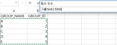 첫번째는 입력 받은 데이터를 선택 (자동 완성 사용할 시에는 범위 선택 후 f4를 눌러서 셀을 고정시켜 줘야 합니다)
