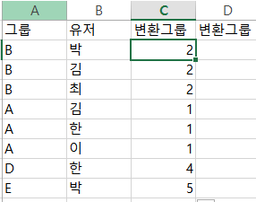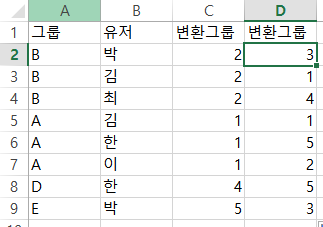 입력값을 보면 어떤 유저가 어떤 그룹에 속해 있는지를 나타내는 테이블 입니다.
