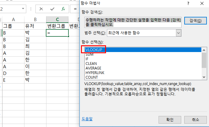 엑셀 함수 VLOOKUP을 이용하여 변환하도록 하겠습니다.